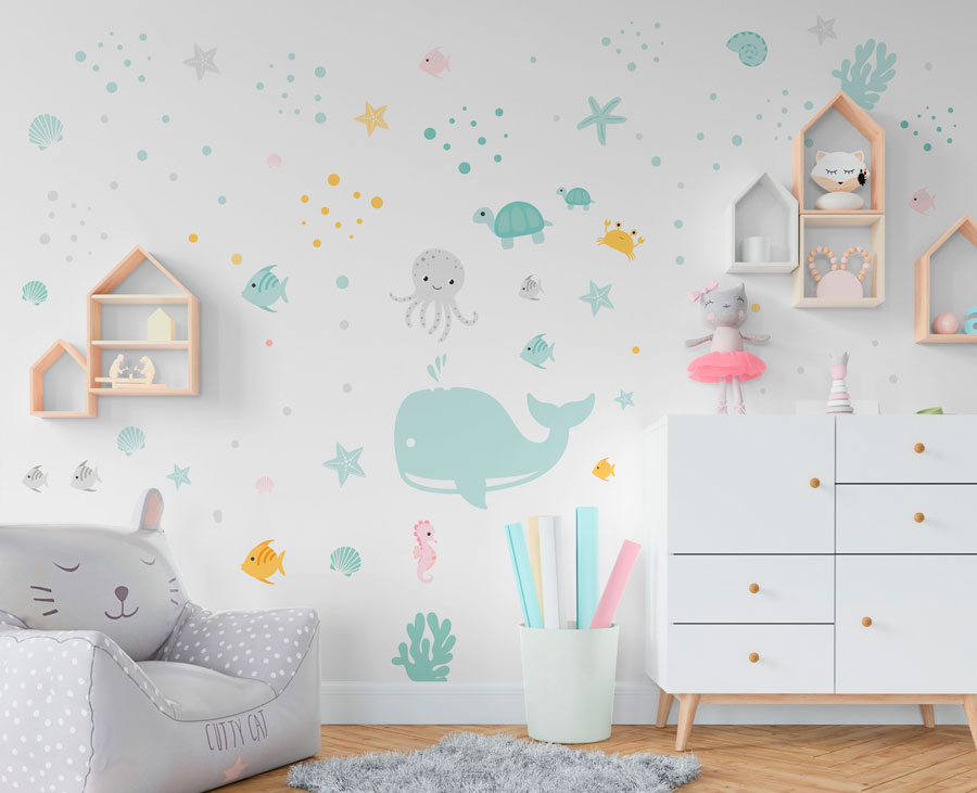 - Vinilos decorativos y adhesivos de pared : Estos elementos pueden ser una forma fácil y económica de agregar decoración temática a las paredes. Hay una amplia variedad de diseños disponibles, desde personajes de dibujos animados hasta motivos naturales.